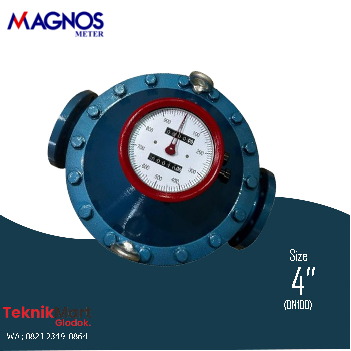 Flowmeter Oval Gear merk Magnos ukuran 4 inci (DN100) adalah alat ukur aliran tipe positive displacement yang dirancang khusus untuk mengukur volume cairan dengan tingkat viskositas (kekentalan) yang bervariasi, seperti bahan bakar (solar/bensin), minyak goreng, dan cairan kimia lainnya